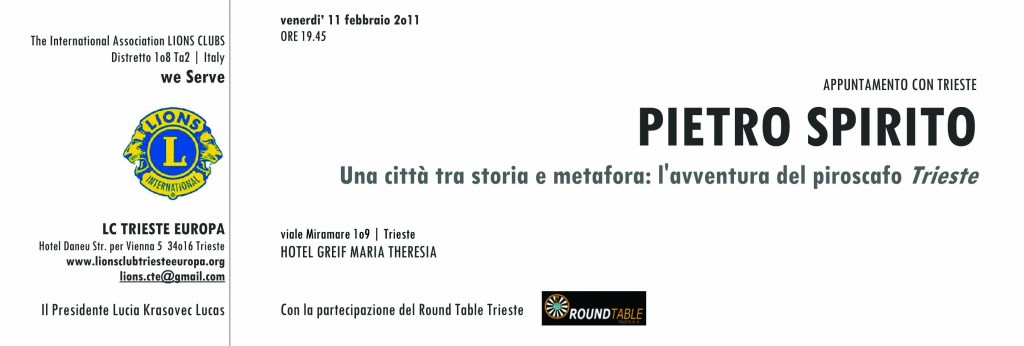 Venerdì 11 febbraio, alle ore 19.45, presso la sala conferenze dell’Hotel Greif Maria Theresia di Trieste.