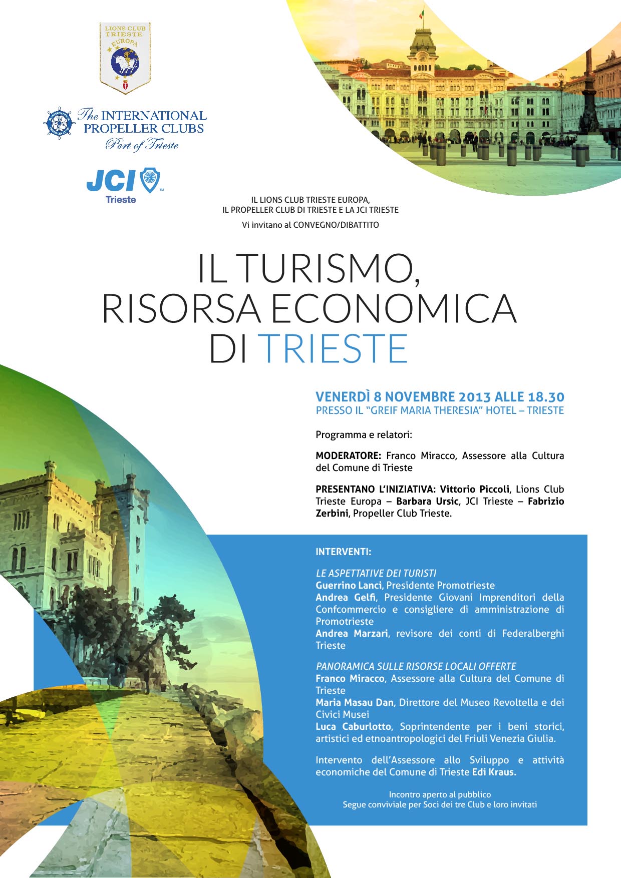 Written by Lions Club Trieste Europa5 novembre 201311 novembre 2013 Parliamo di turismo: una risorsa economica per Trieste Condividi: Invia un link a un amico via e-mail (Si apre in una nuova finestra) E-mail Condividi su Facebook (Si apre in una nuova finestra) Facebook Mi piace Caricamento...